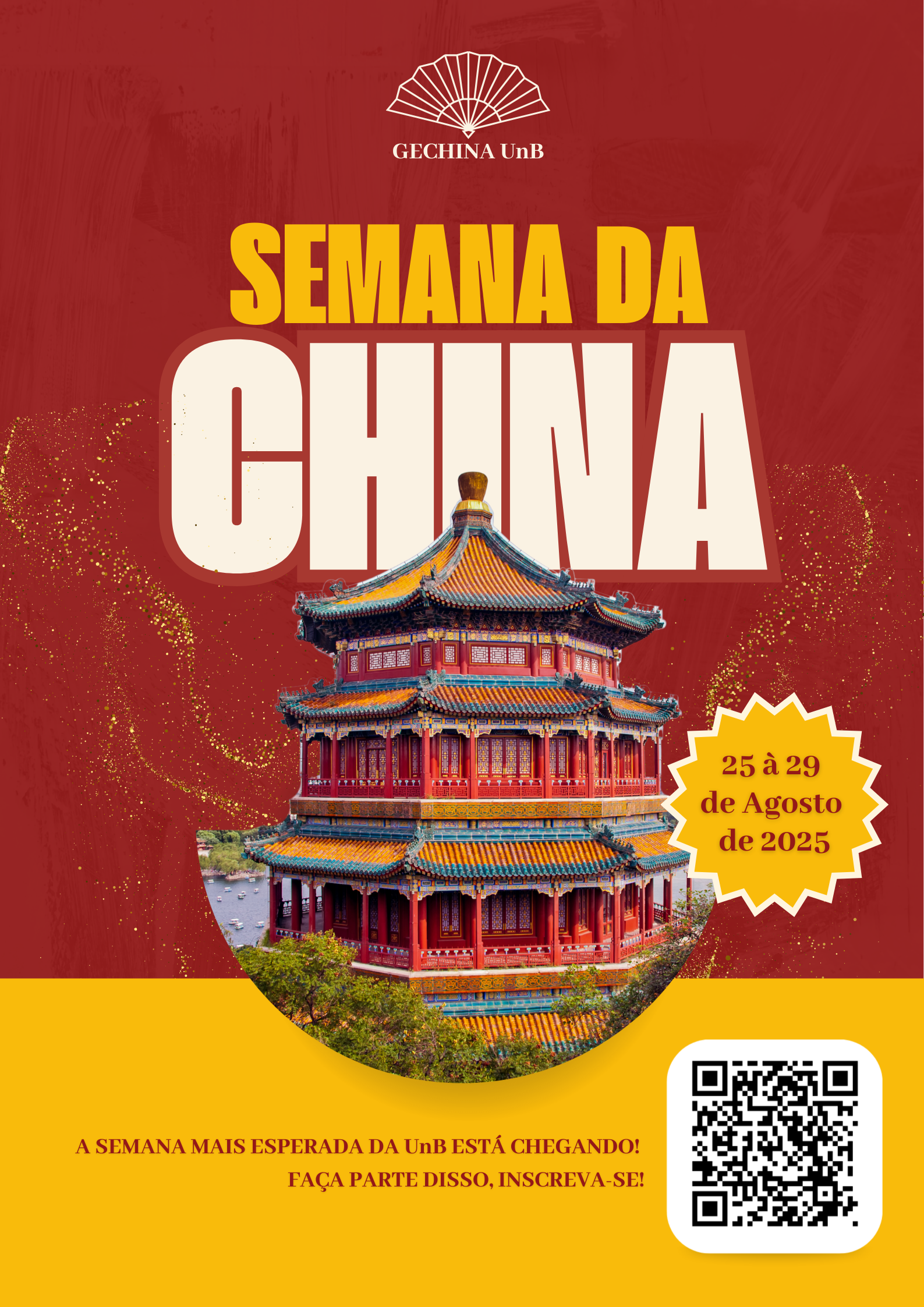 Para celebrar os 5 anos do GECHINA e os 51 anos das relações diplomáticas entre Brasil e China, o Grupo de Estudos sobre a China da Universidade de Brasília (GECHINA UnB) convidou toda a comunidade acadêmica e externa para participar da Semana da China UnB 2025!